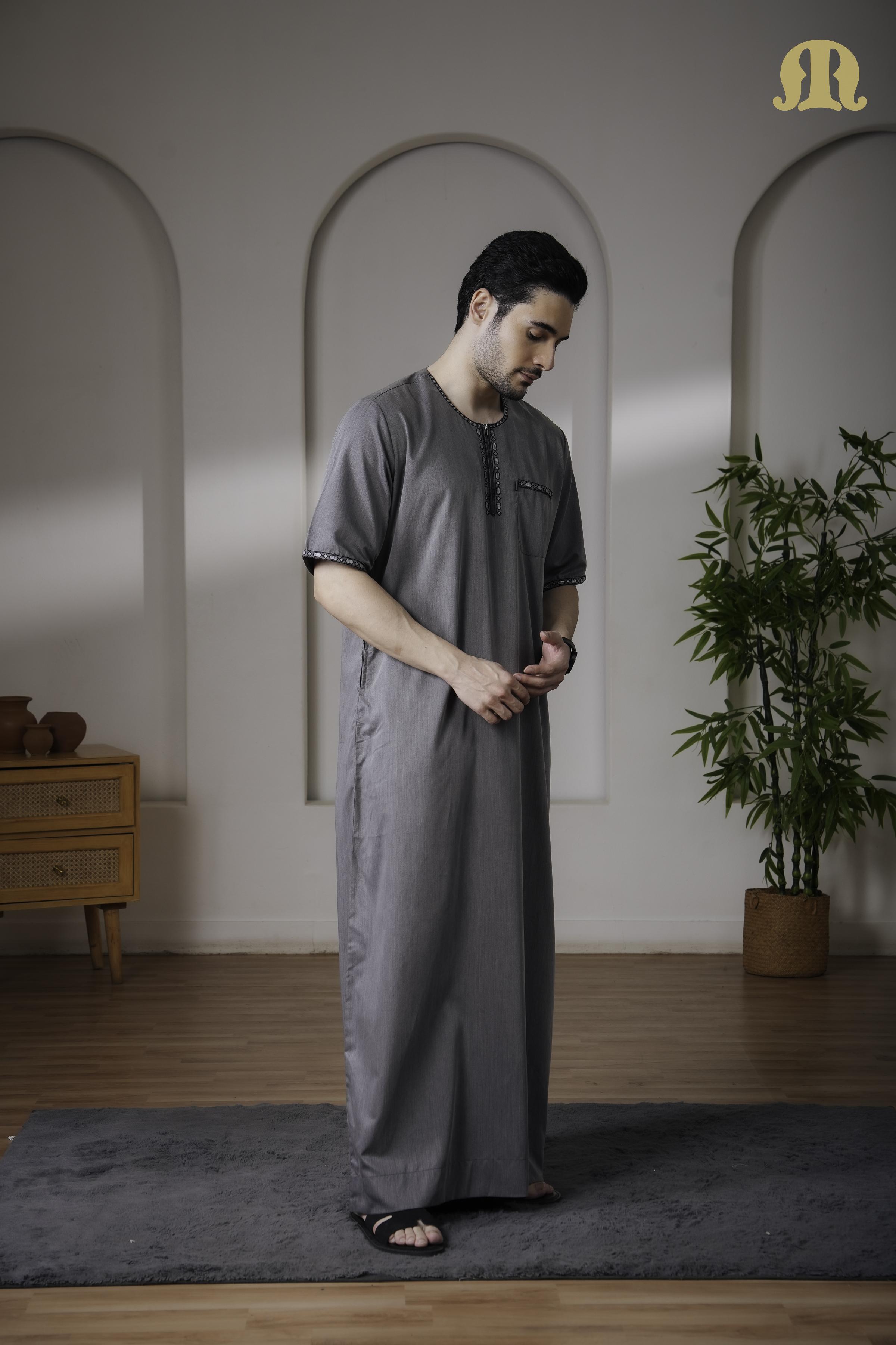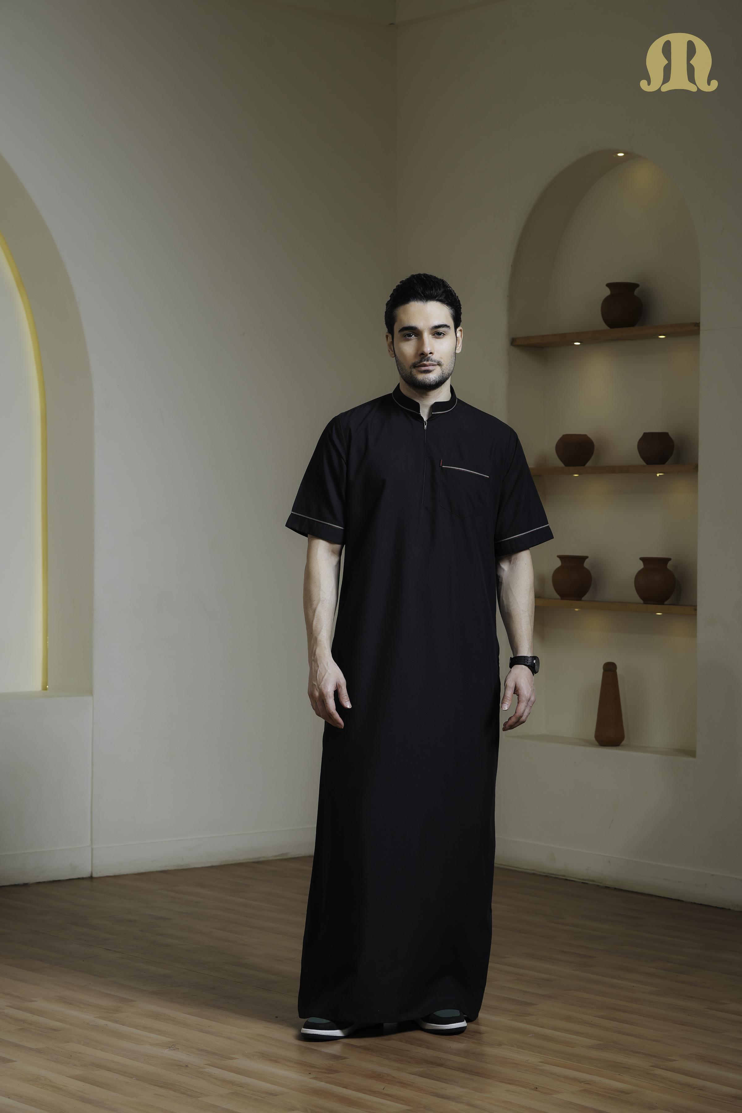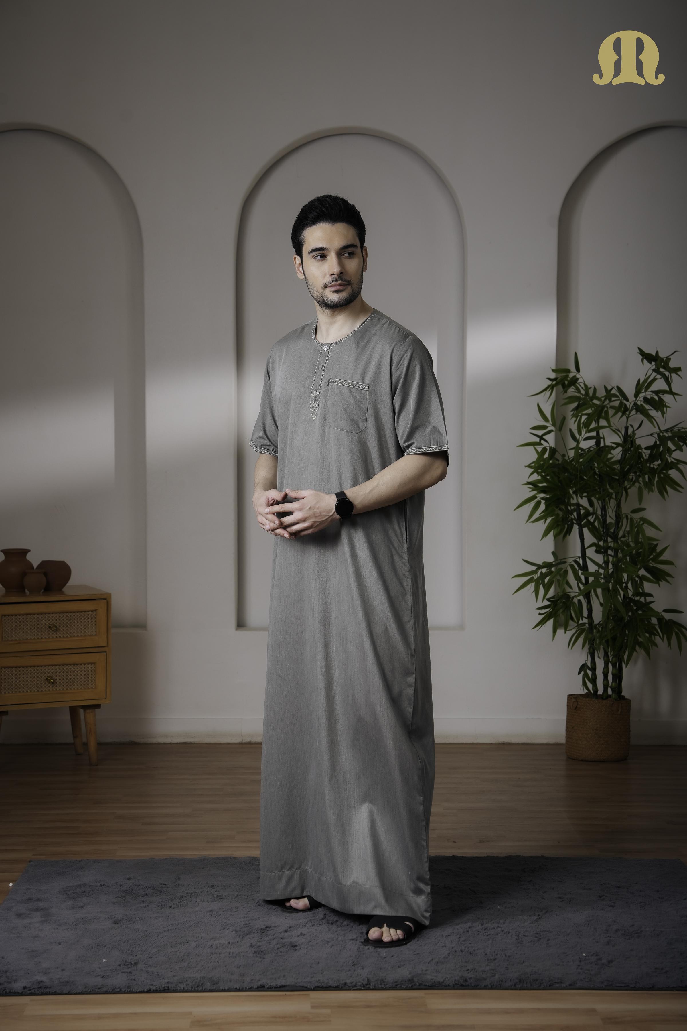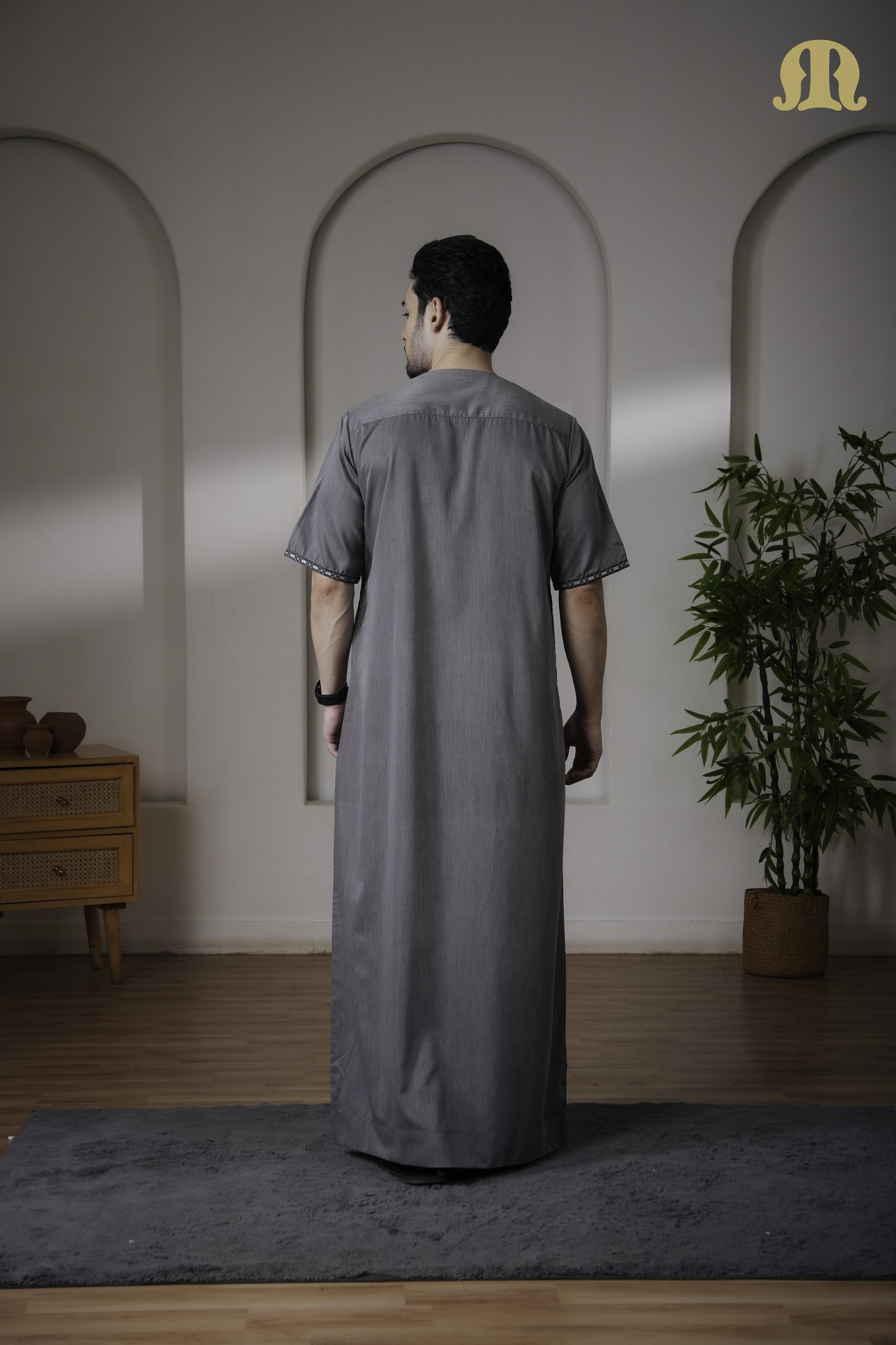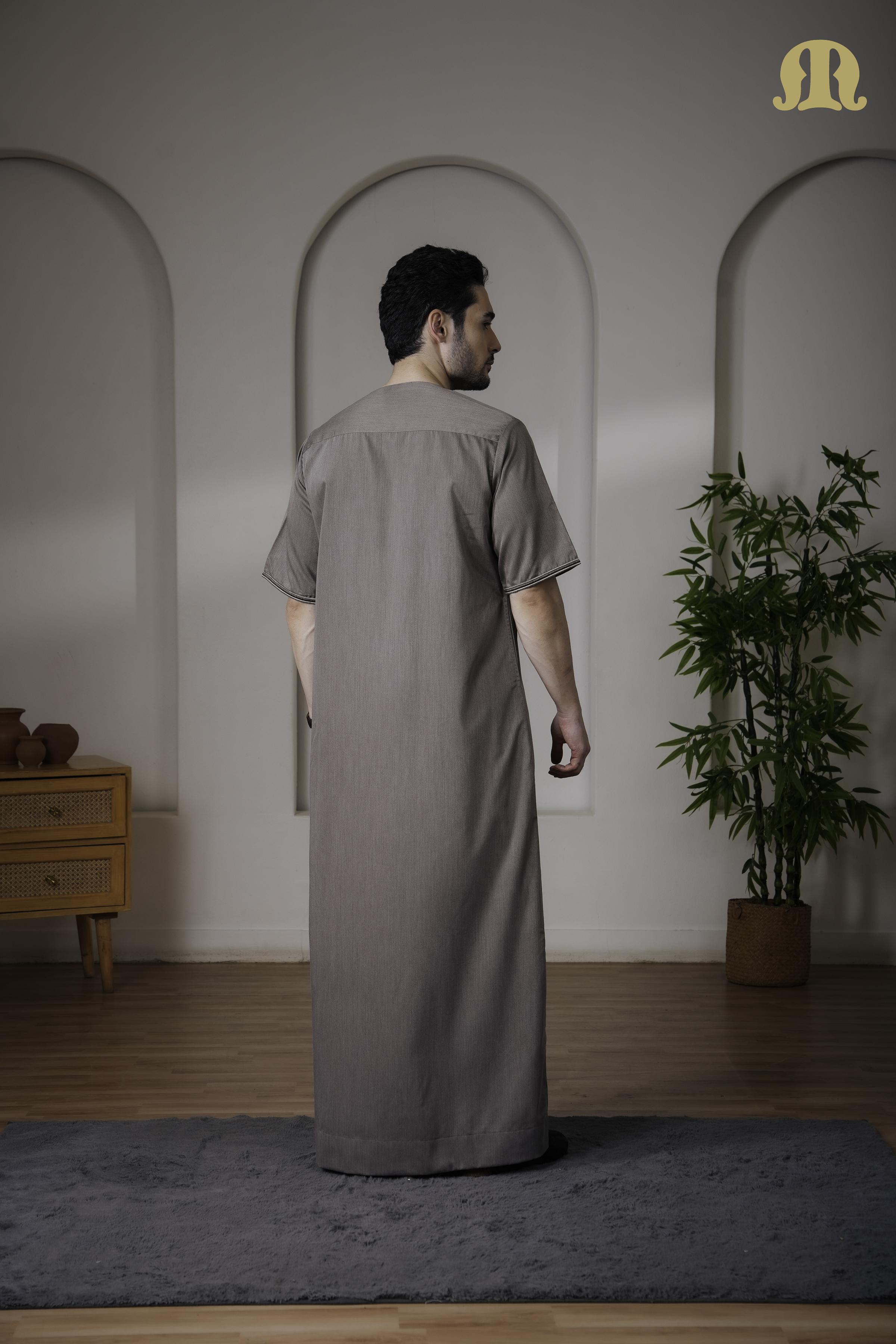 Designed for comfort with refined detailing, this Beige Andak Half Sleeve Thobe offers a perfect balance of practicality and traditional elegance. Its clean, streamlined silhouette ensures ease of movement, making it ideal for everyday wear in all climates. Crafted from premium Poly Viscose fabric, the thobe combines the breathability of cotton with the durability and wrinkle resistance of polyester. The result is a lightweight, easy-to-maintain garment that stays comfortable and presentable throughout the day. The design is elevated by an embroidered, adding a touch of sophistication, while embroidered sleeves enhance the overall look with subtle craftsmanship. The half sleeves provide a relaxed, contemporary feel without compromising modesty or style.
