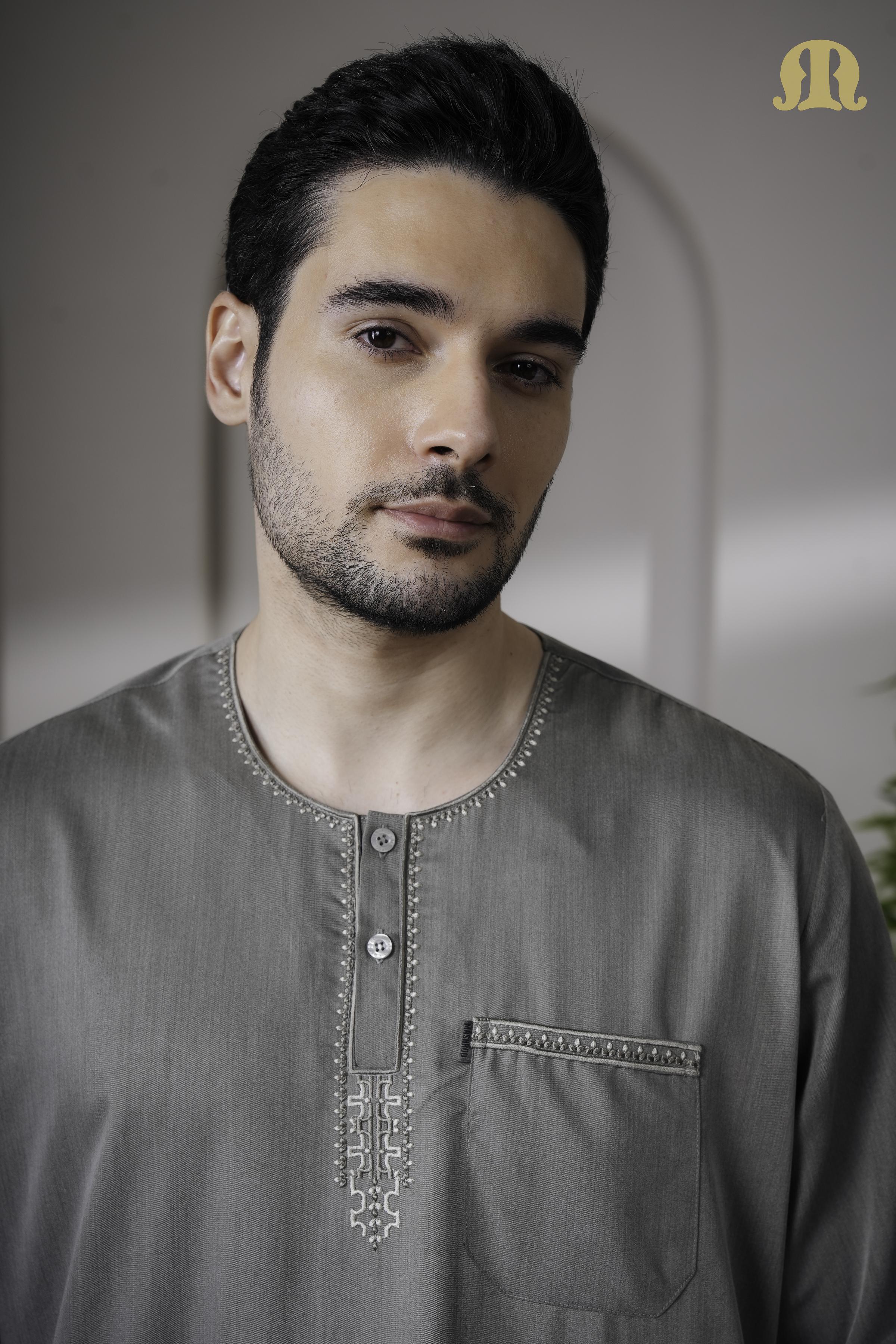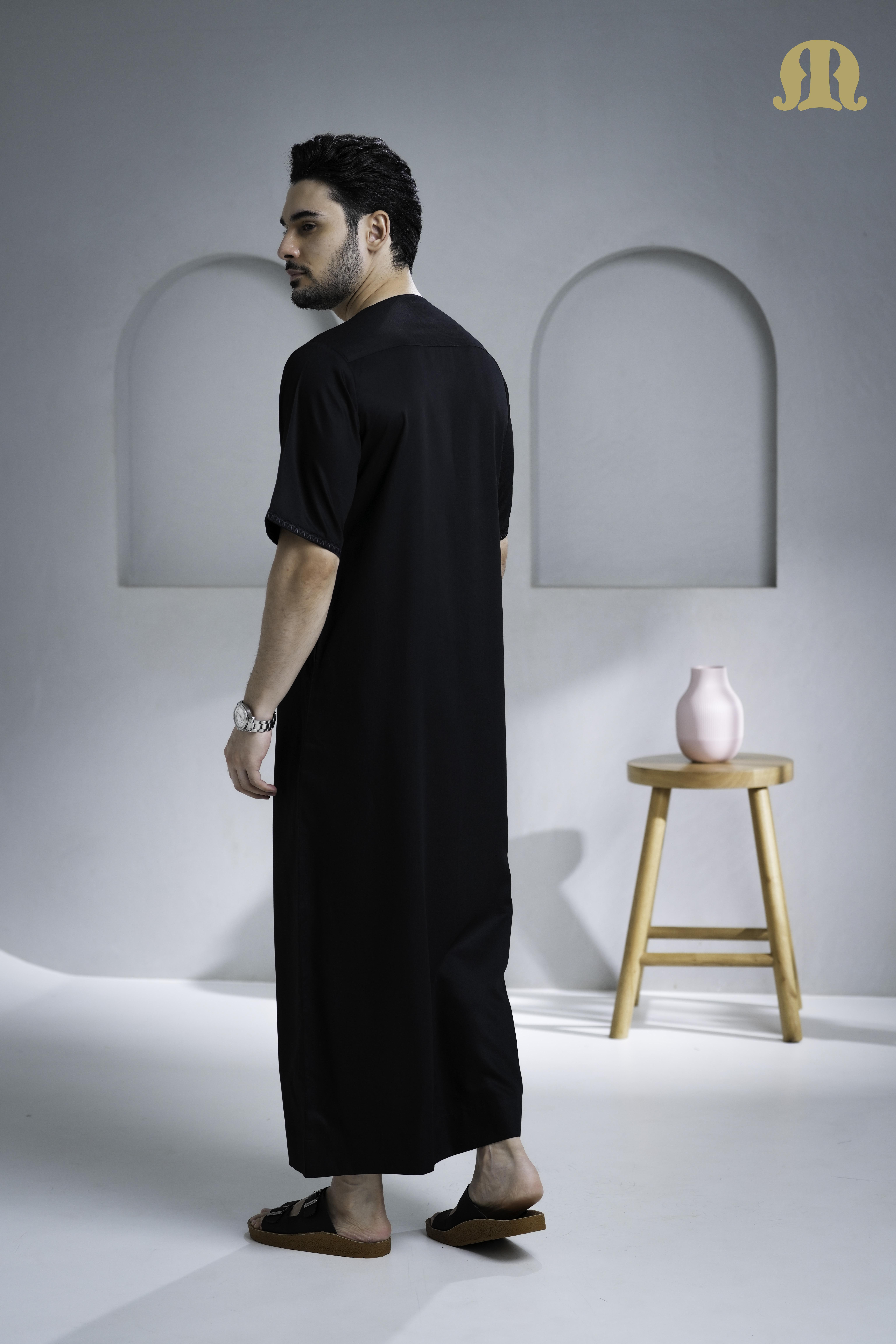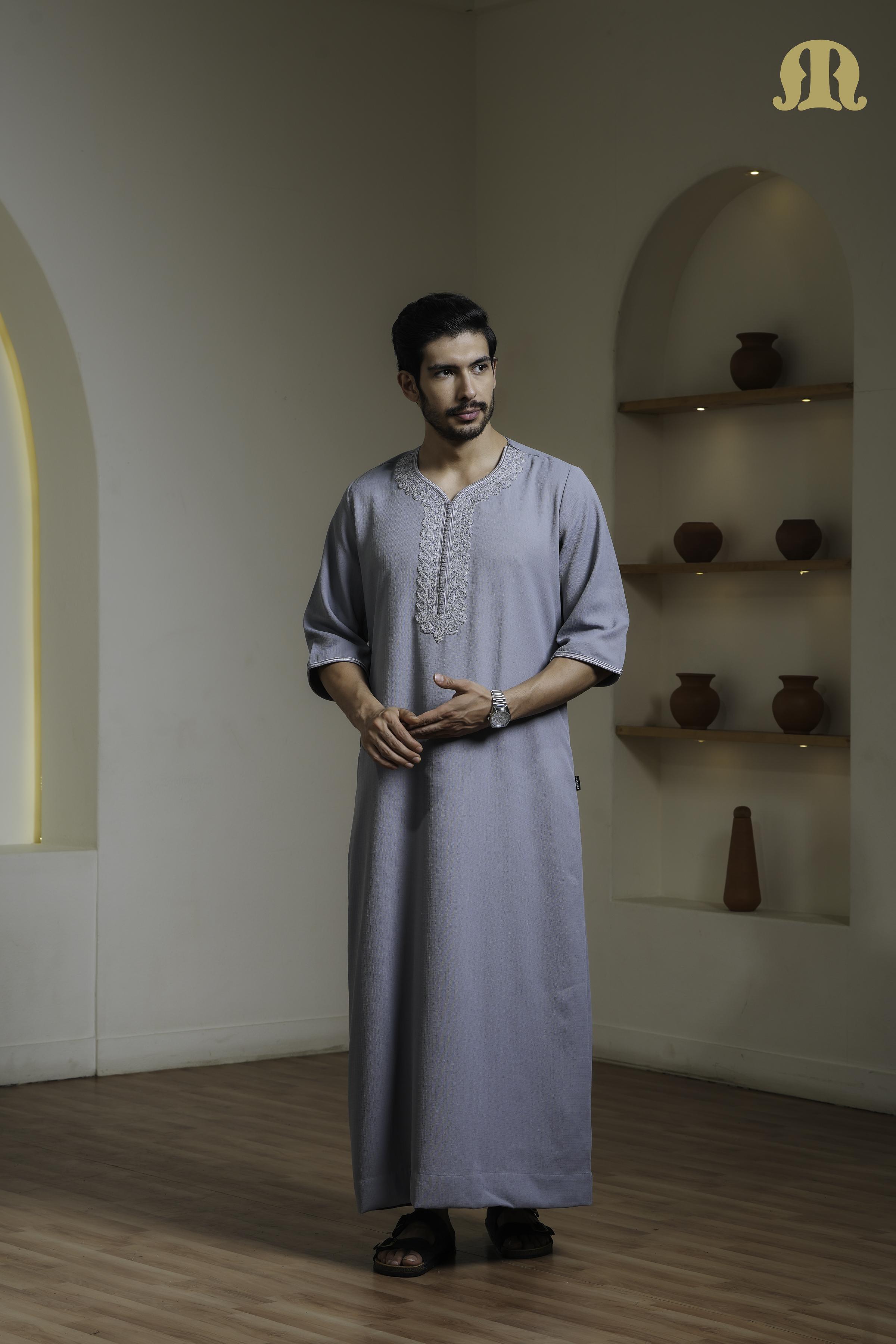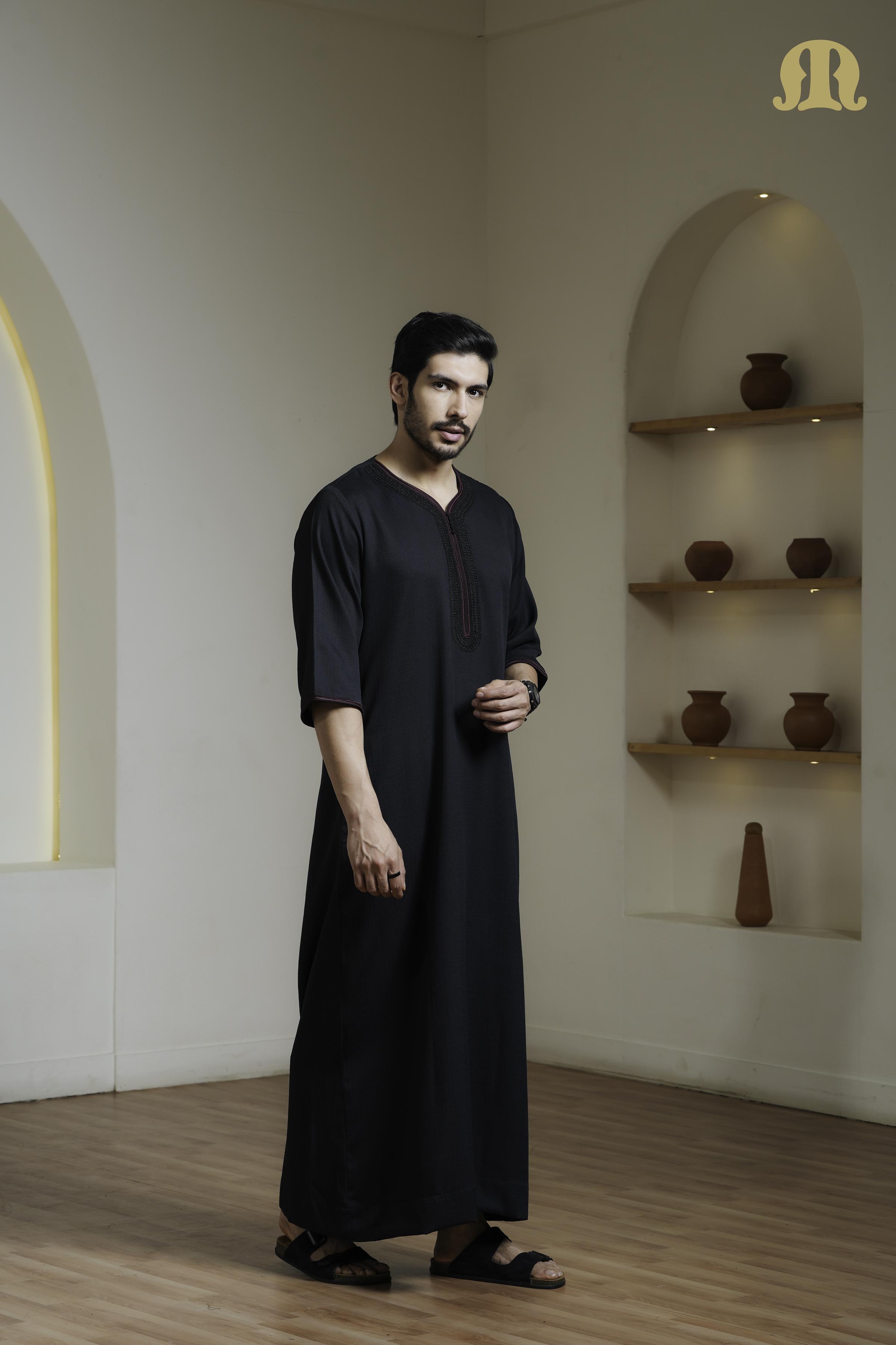 Designed for comfort with refined detailing, this Beige Andak Half Sleeve Thobe offers a perfect balance of practicality and traditional elegance. Its clean, streamlined silhouette ensures ease of movement, making it ideal for everyday wear in all climates. Crafted from premium Poly Viscose fabric, the thobe combines the breathability of cotton with the durability and wrinkle resistance of polyester. The result is a lightweight, easy-to-maintain garment that stays comfortable and presentable throughout the day. The design is elevated by an embroidered, adding a touch of sophistication, while embroidered sleeves enhance the overall look with subtle craftsmanship. The half sleeves provide a relaxed, contemporary feel without compromising modesty or style.