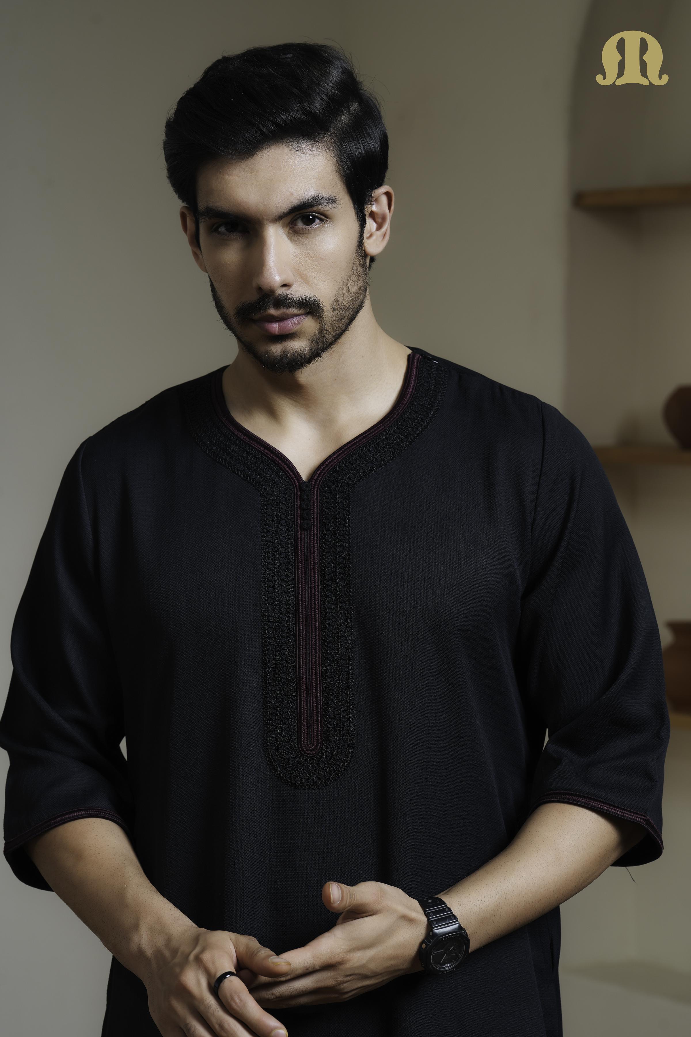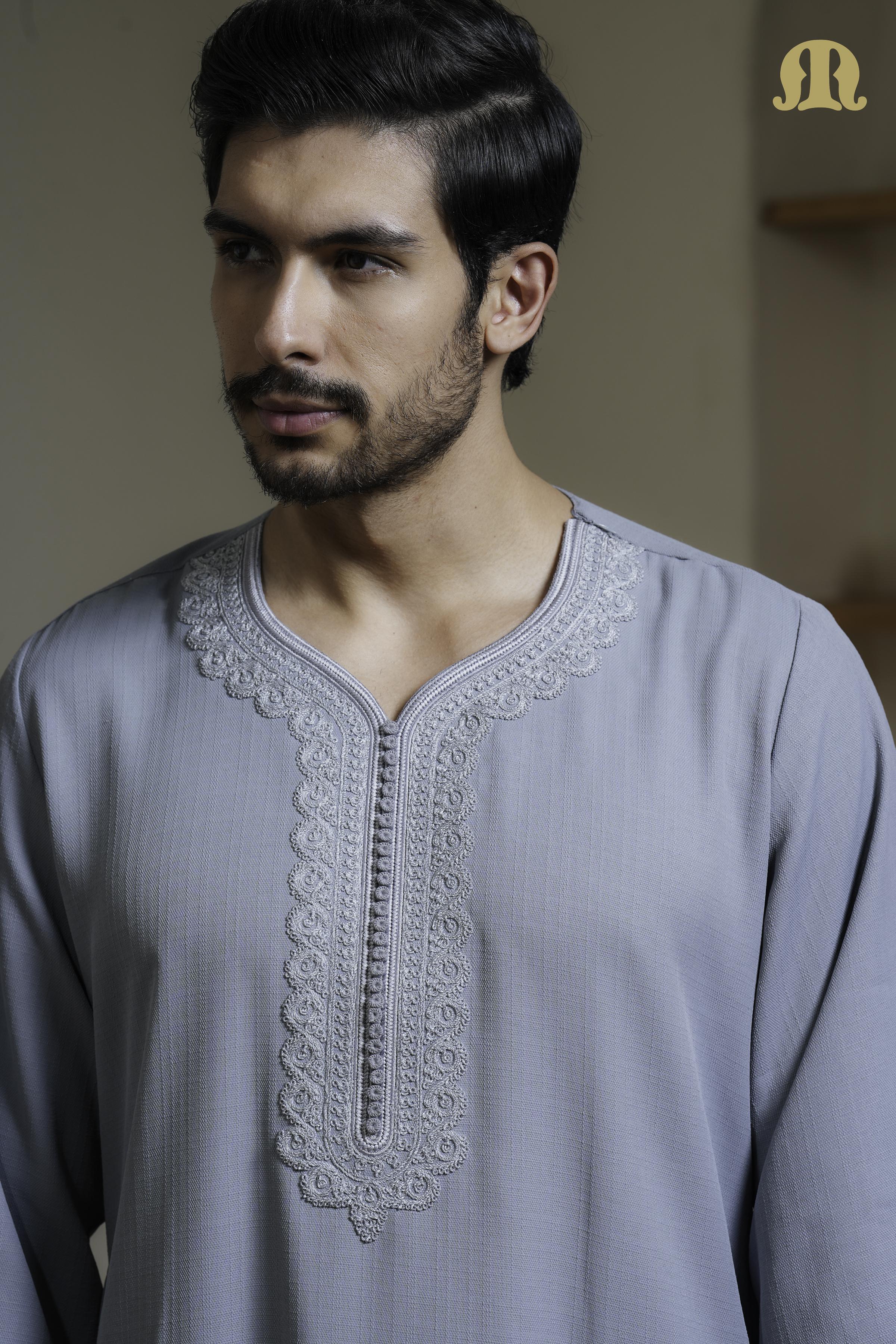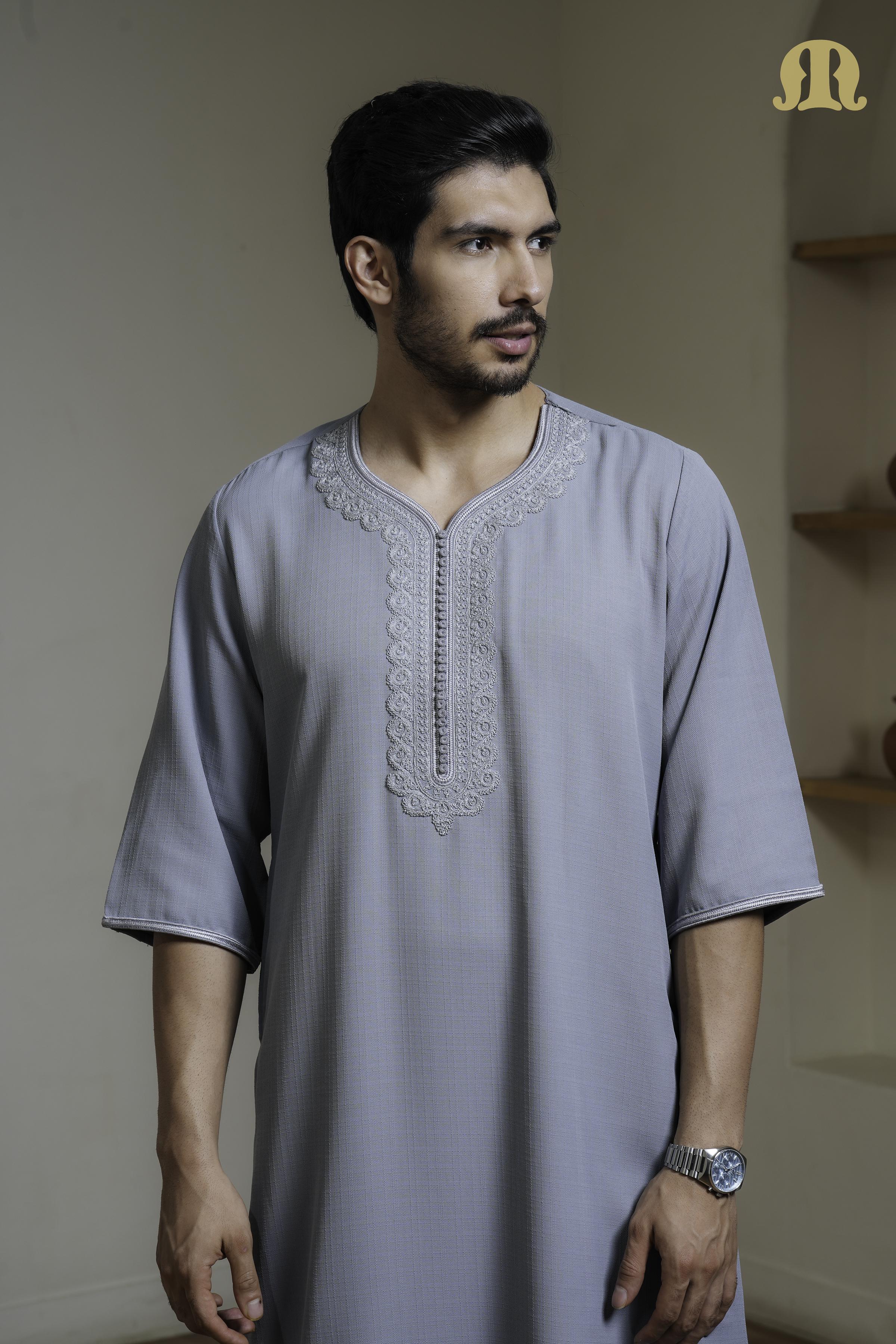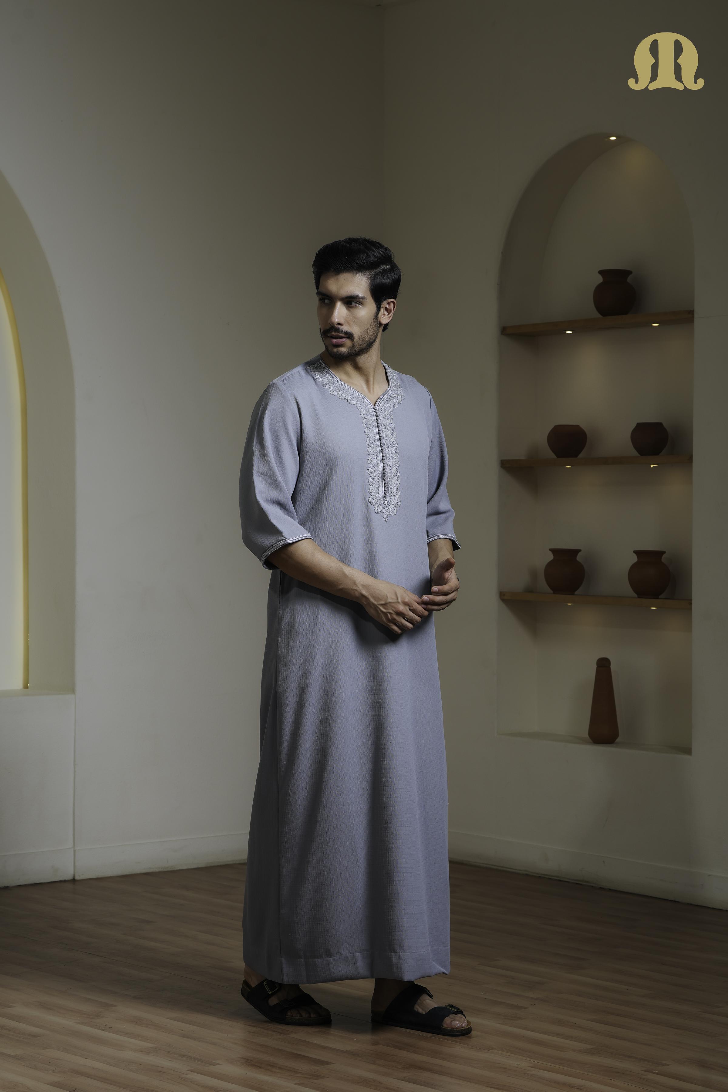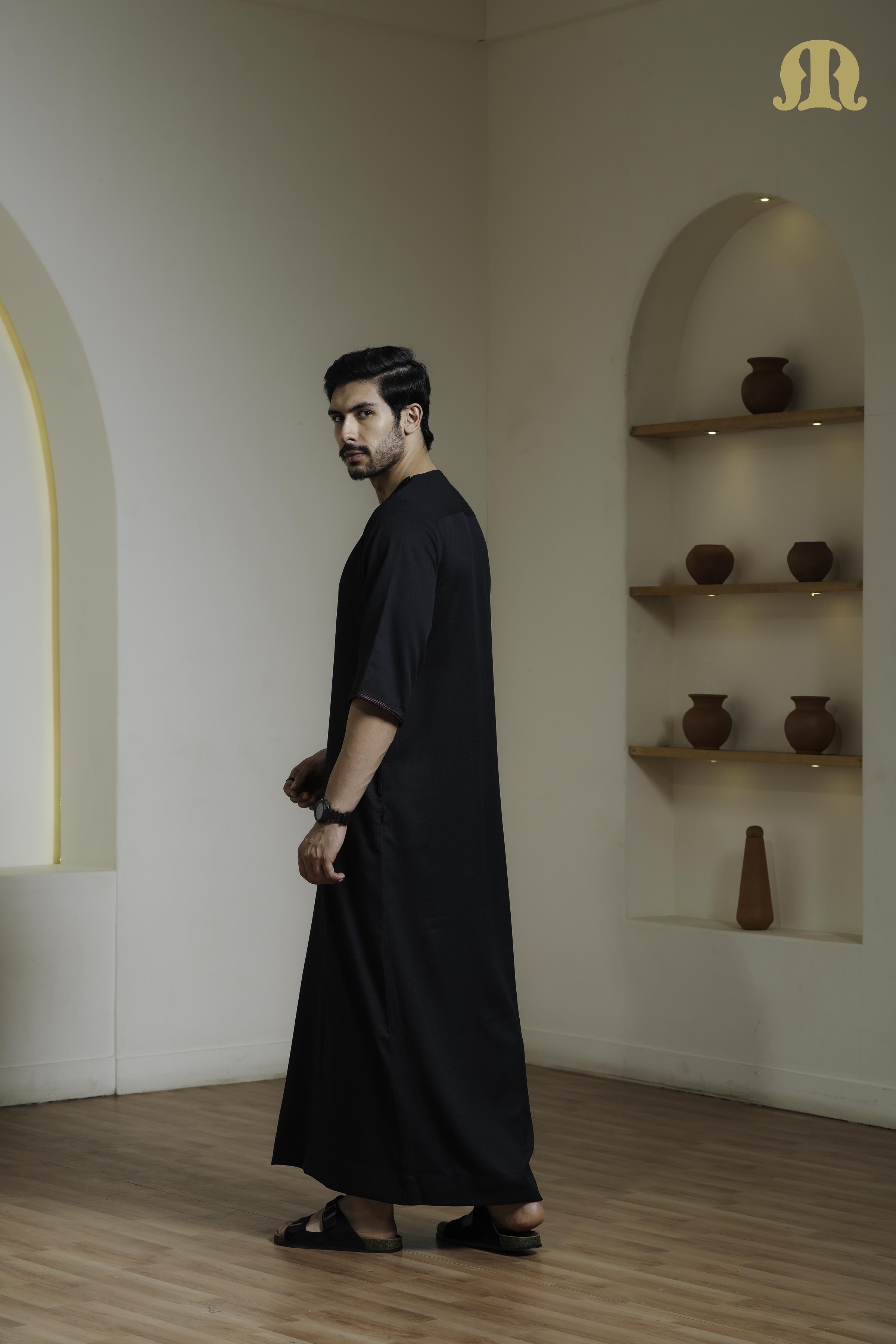 Designed for comfort with refined detailing, this Beige Andak Half Sleeve Thobe offers a perfect balance of practicality and traditional elegance. Its clean, streamlined silhouette ensures ease of movement, making it ideal for everyday wear in all climates. Crafted from premium Poly Viscose fabric, the thobe combines the breathability of cotton with the durability and wrinkle resistance of polyester. The result is a lightweight, easy-to-maintain garment that stays comfortable and presentable throughout the day. The design is elevated by an embroidered, adding a touch of sophistication, while embroidered sleeves enhance the overall look with subtle craftsmanship. The half sleeves provide a relaxed, contemporary feel without compromising modesty or style.