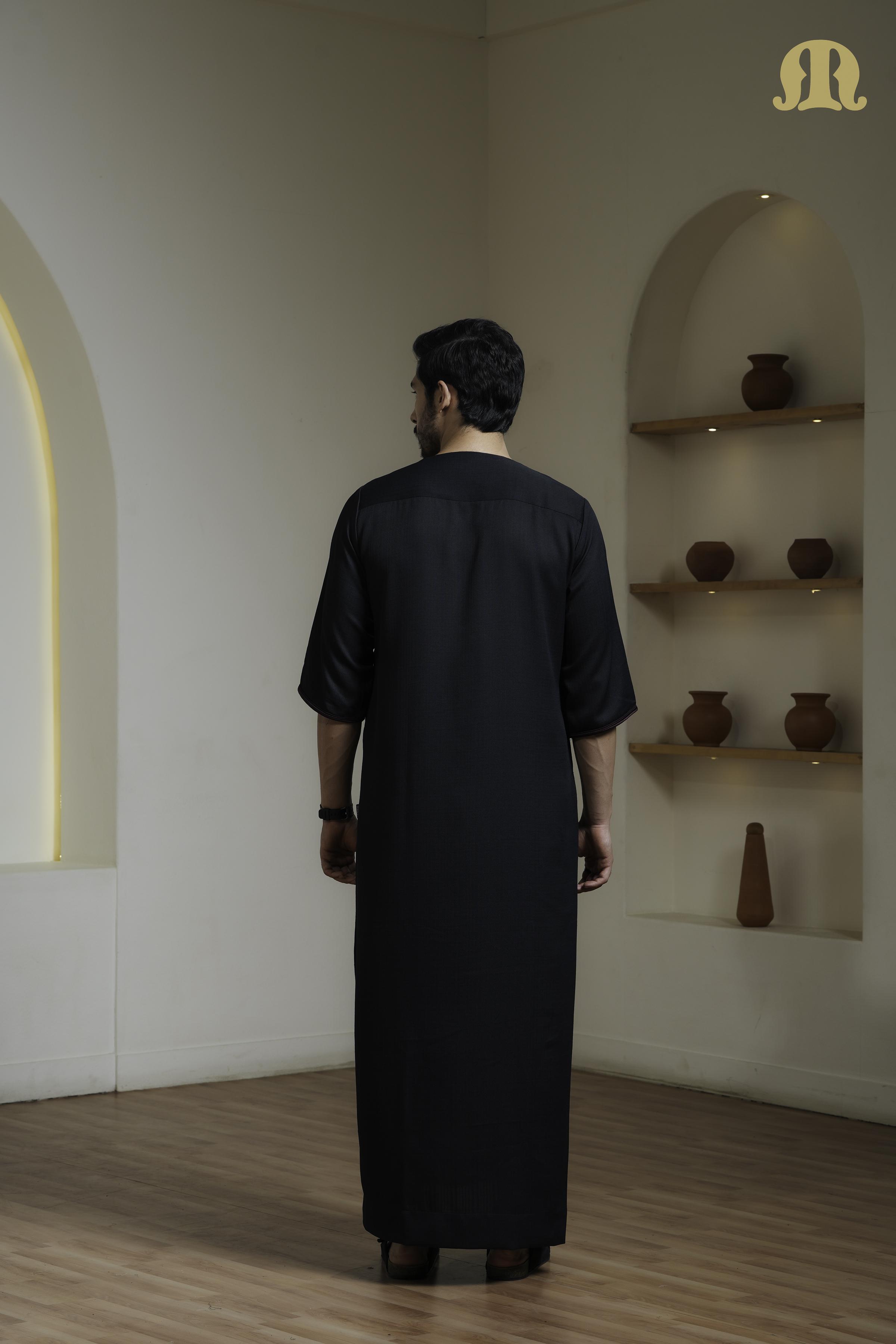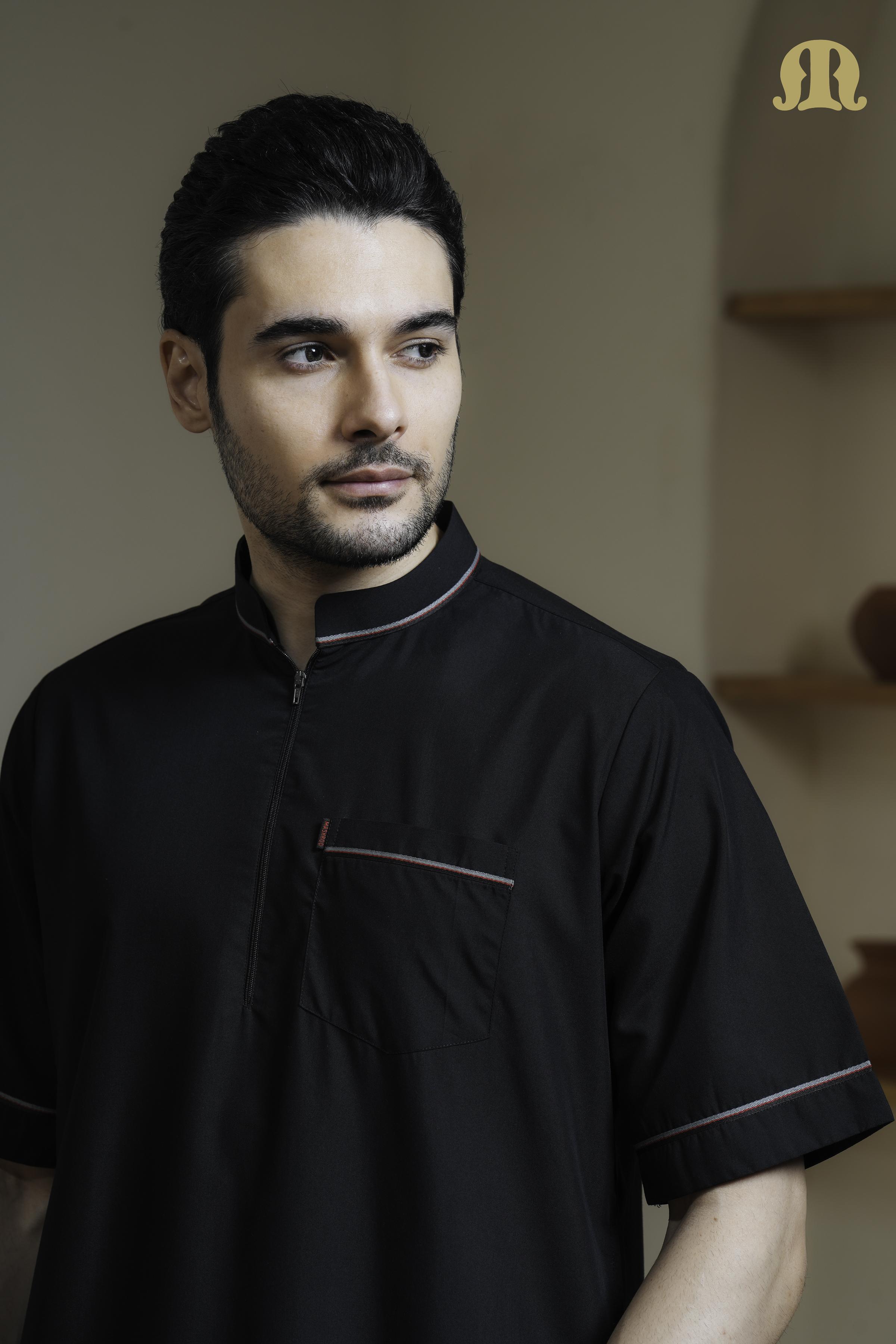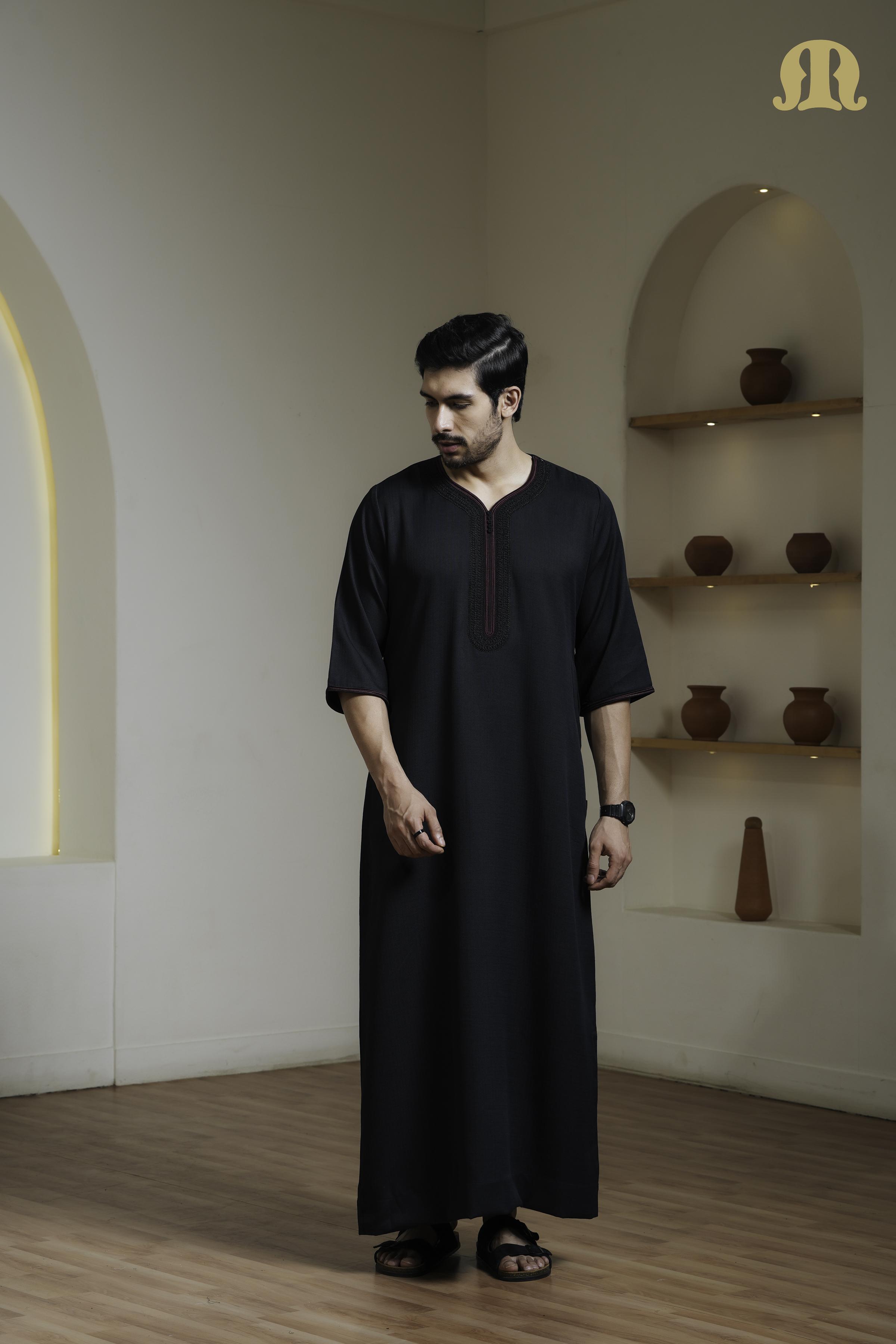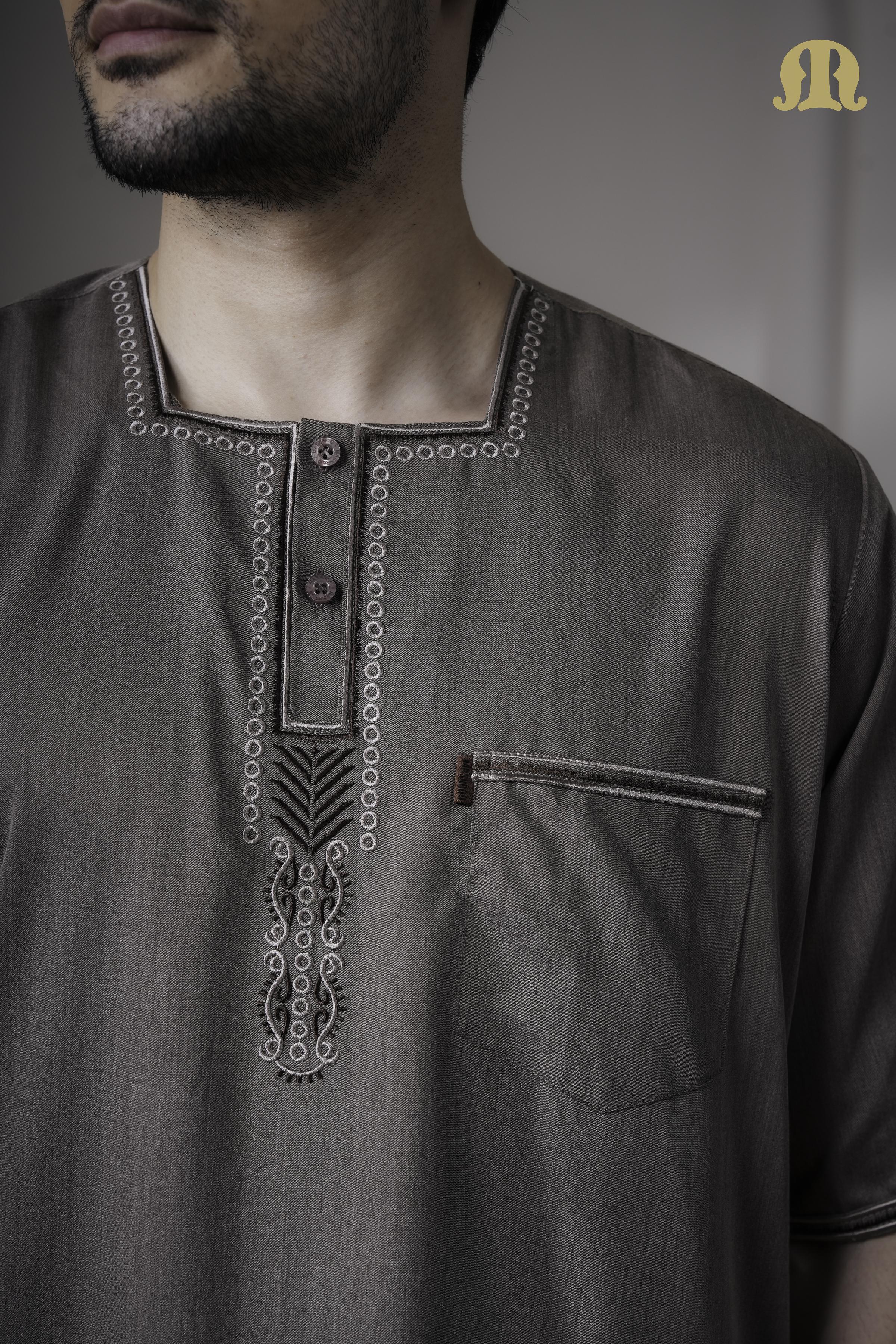 Designed for comfort with refined detailing, this Green Rizbin Half Sleeve Thobe offers a perfect balance of practicality and traditional elegance. Its clean, streamlined silhouette ensures ease of movement, making it ideal for everyday wear in all climates. Crafted from premium Poly Viscose fabric, the thobe combines the breathability of cotton with the durability and wrinkle resistance of polyester. The result is a lightweight, easy-to-maintain garment that stays comfortable and presentable throughout the day. The design is elevated by an embroidered front placket, adding a touch of sophistication, while embroidered sleeves enhance the overall look with subtle craftsmanship. The half sleeves provide a relaxed, contemporary feel without compromising modesty or style.