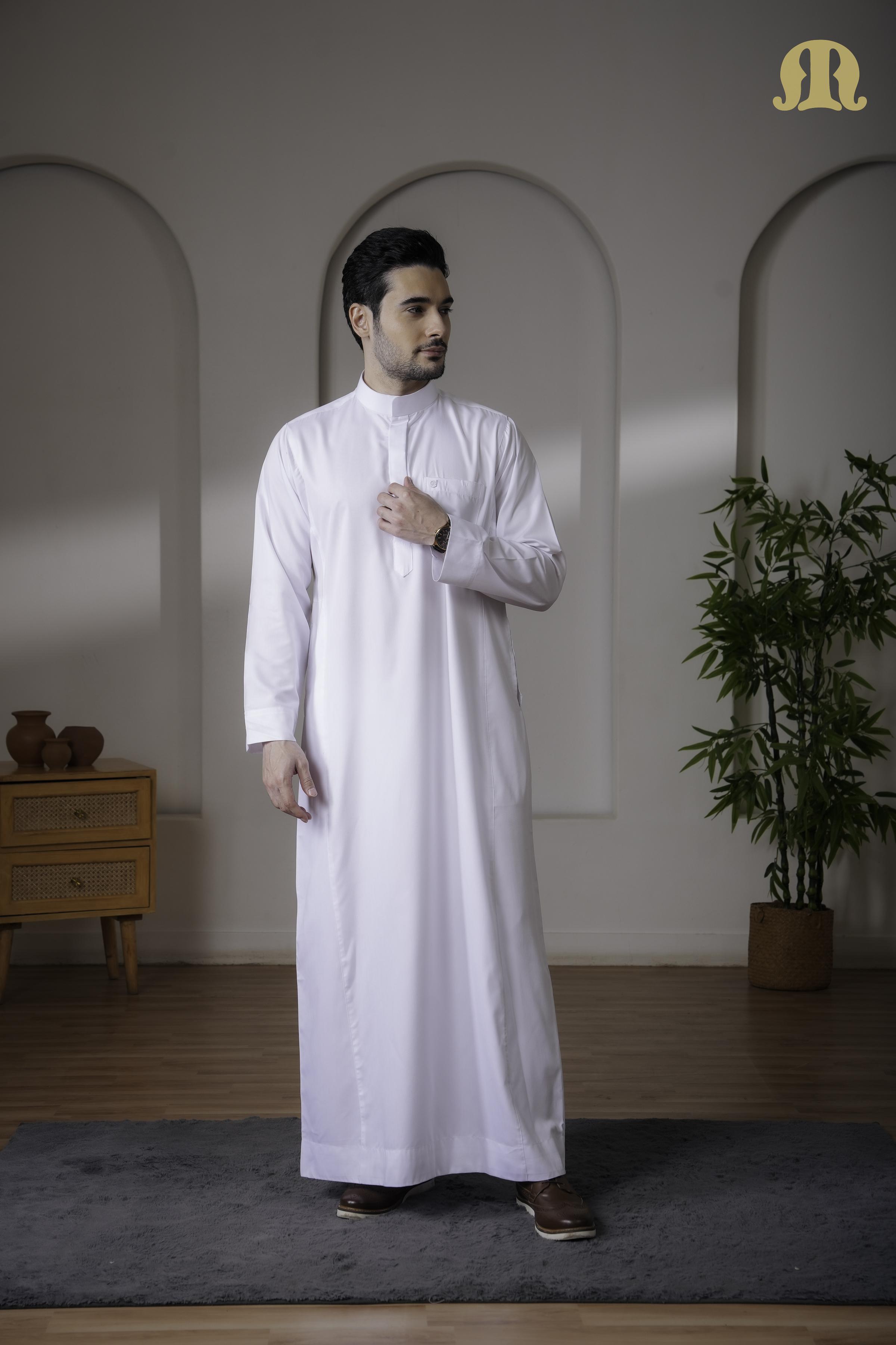 The Kurvig Saudi 2.0 White Thobe embodies understated sophistication with a strong sense of tradition. Tailored in the classic Saudi silhouette, it features a clean, straight fall and a refined collar neckline that delivers a sharp, dignified look suitable for both formal and everyday wear.Crafted from premium Poly Viscose fabric, this thobe combines the softness and breathability of cotton with the durability and wrinkle resistance of polyester. The result is a lightweight, comfortable garment that maintains its structure and finish throughout the day, even with frequent use.. The smooth texture and precise tailoring make it ideal for prayers, gatherings, and professional settings.